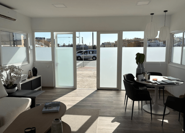 - Vinilado exterior corporativo, que refuerza la identidad visual del proyecto y mejora su presencia de marca desde el primer impacto.